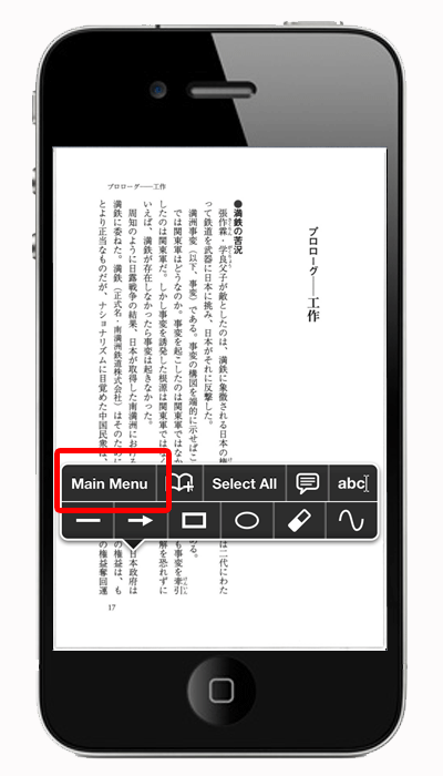 基本となるページを表示後、同ページの任意の位置で長押しするとメインメニューが表示されます。![]()